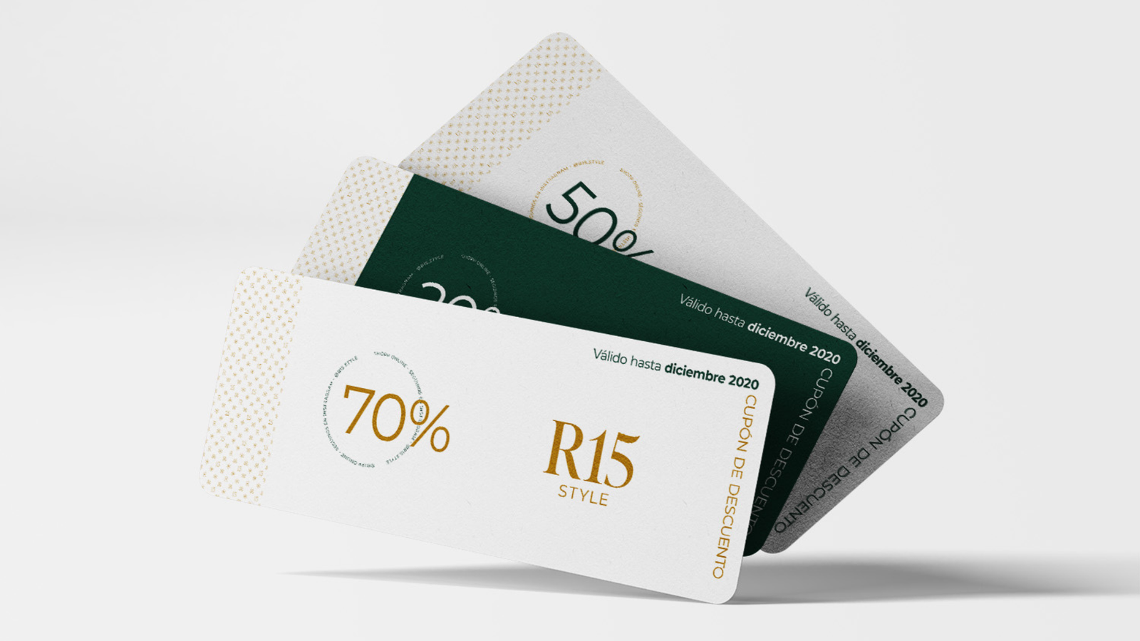 El enfoque del rediseño fue asegurar que cada aplicación reforzara la percepción de R15 Style como una marca sofisticada y osada, equilibrando la exclusividad con un toque accesible. Esto se logró manteniendo una estética minimalista y decisiones precisas sobre el uso de colores y tipografías. El dorado, por ejemplo, se utiliza estratégicamente en el logotipo y módulos, nunca como fondo, para preservar su carácter premium.